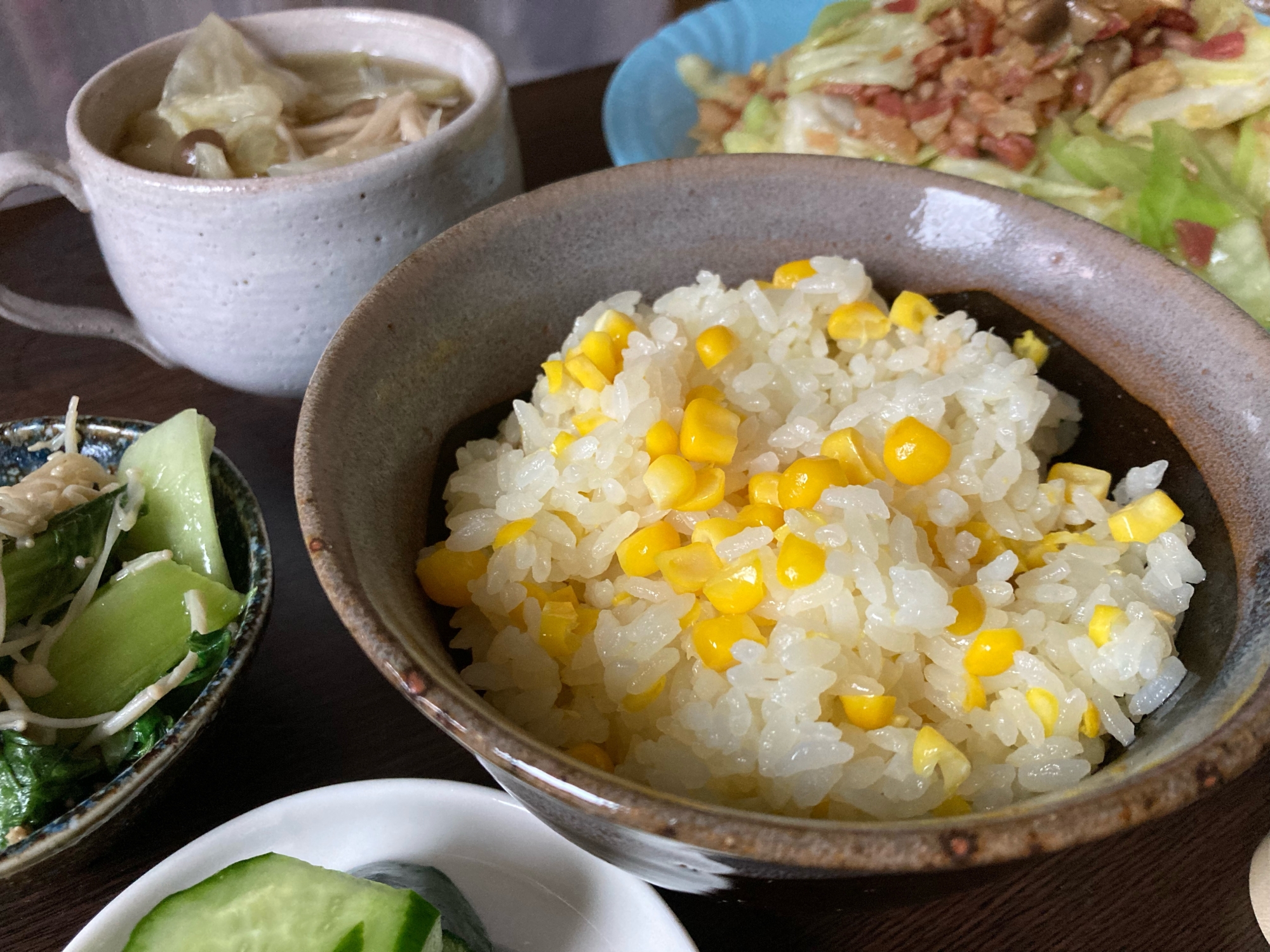 とうもろこしの甘みとベーコンのうまみ ベーコーンごはん あさこ食堂